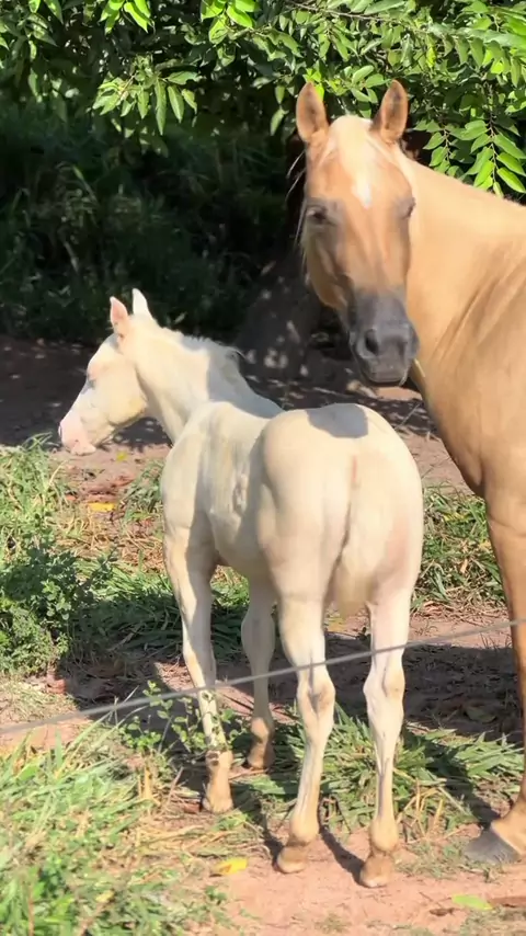Égua quarto de milha palomina e potro quarto de milha puro também!🐎🐎♥️🏡😍🫶 #horse #cavalos #amorporcavalo #quartodemilha #animais