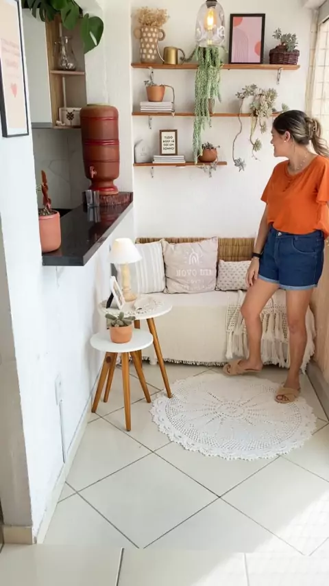 Decoração da minha varandinha, usando um fundo de guarda-roupa que encontramos na rua. #decoraçao #decor #trend #kwai #casa