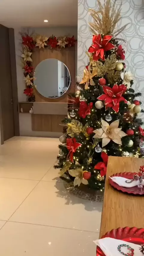 Preparem o coração porque a magia do Natal chegou mais cedo por aqui! ✨ Olha que inspiração de decoração de sala de jantar, perfeita para a ceia em família. ​Combinei o clássico vermelho e dourado, com um toque rústico na mesa, e o resultado ficou incrível! ​🎄 Todos os itens da decoração, desde as bolas da árvore até os porta-guardanapos, estão disponíveis para compra. ​Quer montar sua sala de jantar igual? O link de todos os produtos está na minha bio! 🎁 #Natal #decoraçãonatalina #SHOPEE