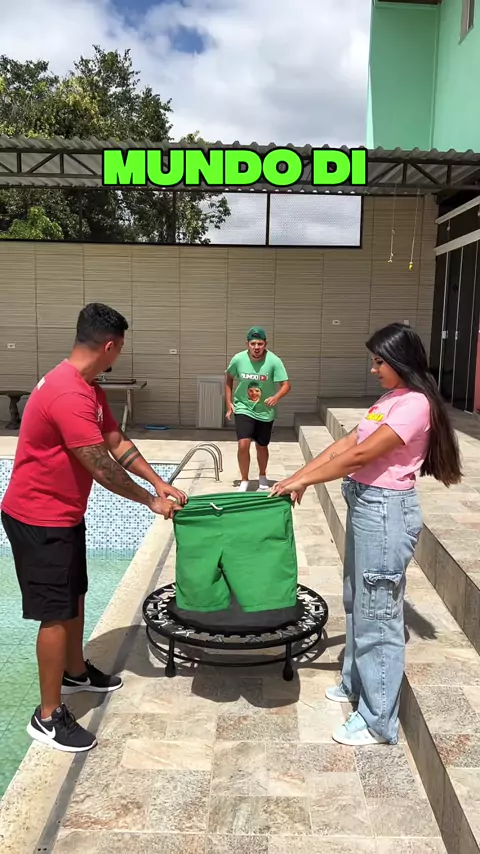 Quem consegue vestir o shorts pulando no trampolim? #kwaiviral