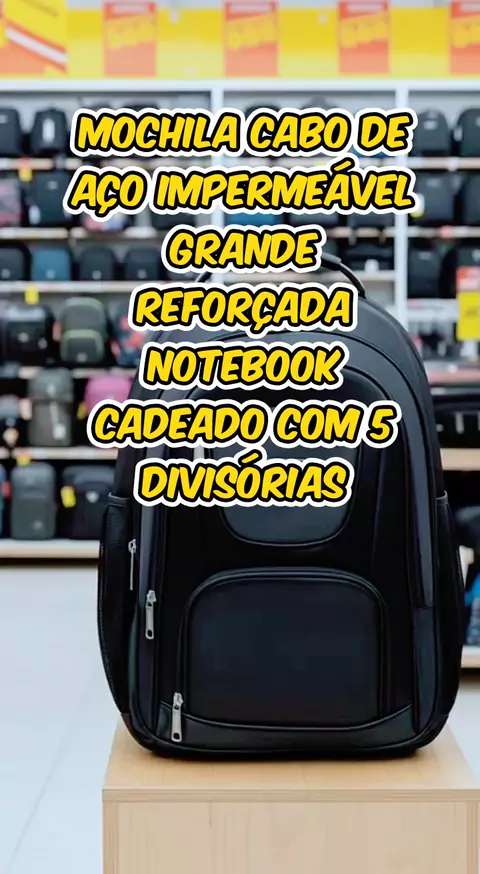 Mochila Cabo de Aço Impermeável Grande Reforçada Notebook Cadeado com 5 Divisórias