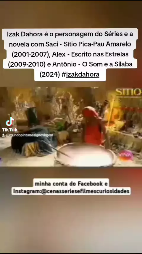 Izak Dahora é o personagem do Séries e a novela com Saci - Sítio Pica-Pau Amarelo (2001-2007), Alex - Escrito nas Estrelas (2009-2010) e Antônio - O Som e a Sílaba (2024) #izakdahora