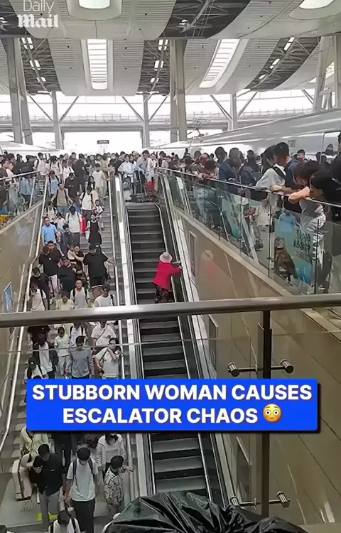 #STUBBORN WOMAN CAUSES ESCALATOR CHAOS