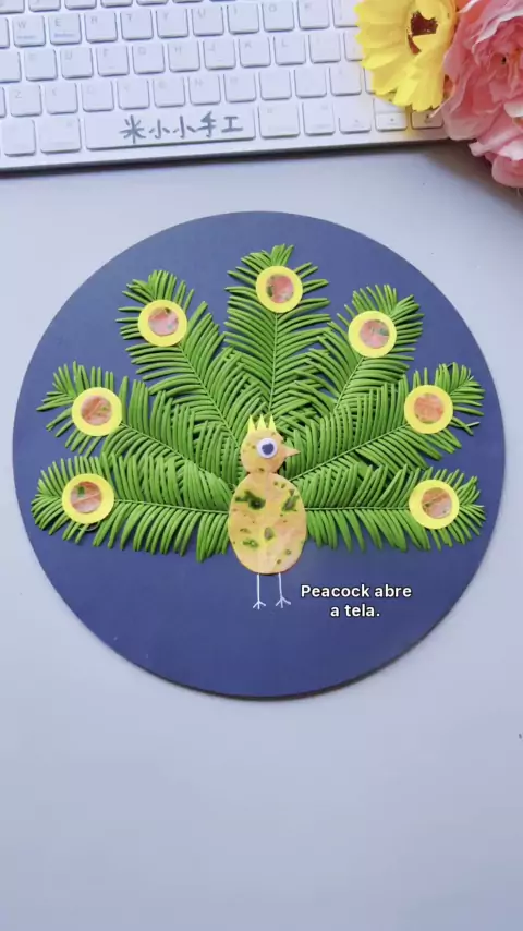 Pegue algumas folhas para fazer o pavão abrir a tela, o que é muito bonito. Experimente com as crianças # Kindergarten Handicraft