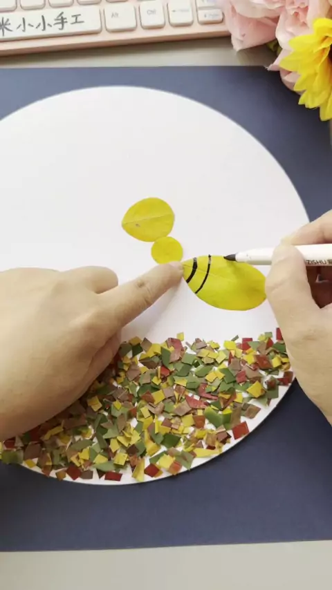 O feriado do Dia Nacional do Índio está chegando. Childcare Vá para fora para pegar algumas folhas caídas para fazer a pintura do tema de outono "folhas caídas Zhiqiu", exercite a habilidade prática das crianças # artesanato do Dia Nacional