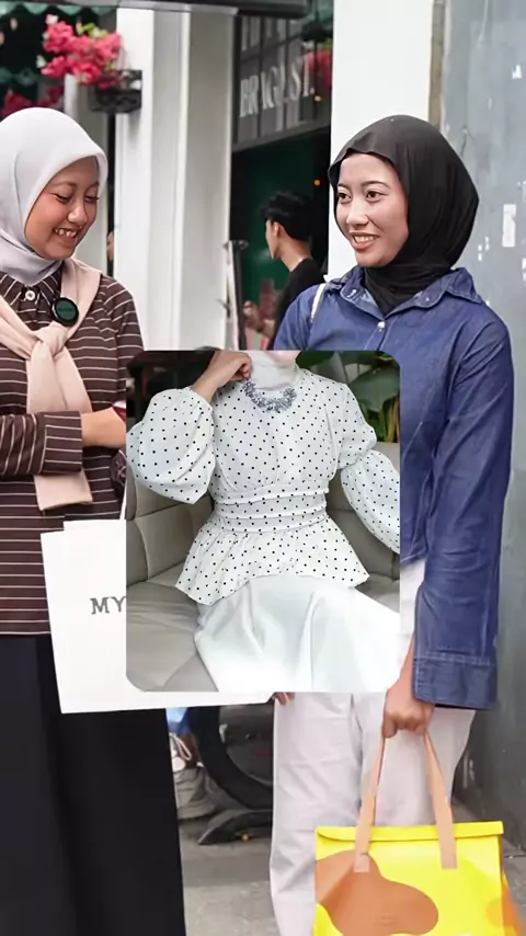 Blouse manis dengan motif polkadot #blousekoreanstyle #polkadotoutfit #mybamus #outfitideas