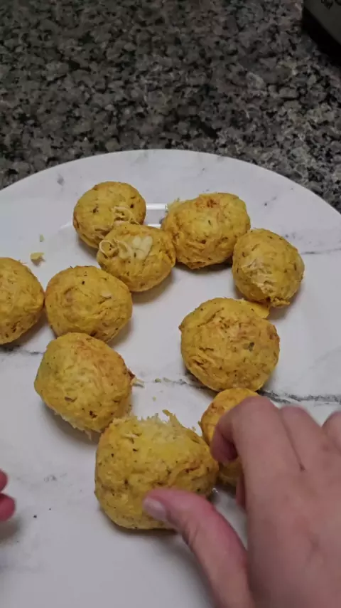 INGREDIENTES: 3 Batatas médias 250g de peito de frango desfiado Sal a gosto Pimenta do reino a gosto Páprica defumada a gosto Ervas finas a gosto 👉🏻 Airfryer 180 graus por 20 minutos. Gostou da receita? Me segue para mais ❤️ #airfryer #bolinho #frango