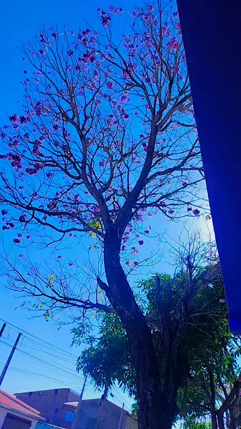 gente olha a árvore da frente da minha loja Hoje amanheceu linda cheia de flores Deus é perfeito glória a Deus que ele abre linda que tá hoje