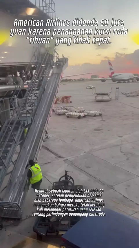 American Airlines didenda 50 juta yuan karena penanganan kursi roda "ribuan" yang tidak tepat.