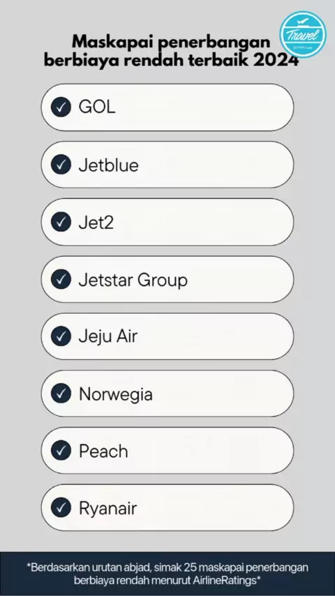 Situs AirlineRatings kembali merilis daftar Best Low Cost Airlines atau daftar maskapai penerbangan dengan biaya rendah terbaik di dunia 2024 pada Selasa (28/5/2024). Ada 25 maskapai biaya rendah terbaik yang diurutkan secara abjad. Simak berita selengkapnya di Kompas.com Travel! #flight #pesawat #lowcostairlines #kompastravel # Penulis: Krisda Tiofani, Ni Nyoman Wira Widyanti Video editor: Clara Maharani Cinta