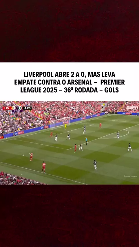 LIVERPOOL ABRE 2 A 0, MAS LEVA EMPATE CONTRA O ARSENAL - PREMIER LEAGUE 2025 - 36ª RODADA - GOLS #diadasmães #liverpol #Futebol