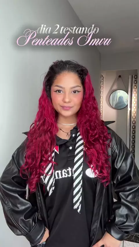 Dia 02 testando penteados IMVU! #penteados #cabelocolorido #cachos #kwai #cacheada