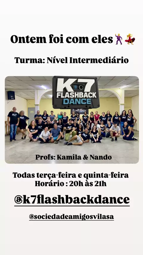 @k7 Flashback Dance Aula de Passinhos de Flashback Segundas e Terças no período da Tarde. Níveis: Melhor Ideia, básico e intermédio, a partir das 14h. #danca #flashback #AULA #santoandre