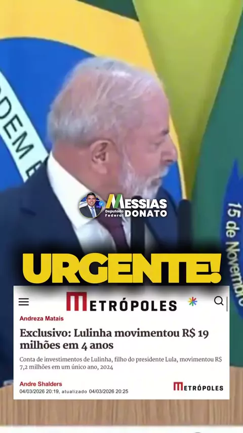 Lulinha movimentou R$ 19,5 milhões entre 2022 e 2026, diz relatório Quebra de sigilo identificou 1,5 mil transações financeiras do filho do presidente; defesa do filho do presidente Lula critica vazamento e diz que recursos e bens são legais @Carlos Bolsonaro(O150001291776451) @Abilio Brunini(O150001194326795) @magnomalta(O1054053627) @Flávio Bolsonaro(O150001120824955) @Nikolas Ferreira(O150000268040696)