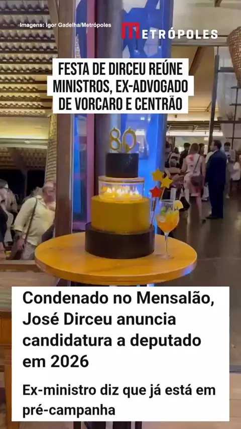 Festa de Dirceu reúne ministros, ex-advogado de Vorcaro e Centrão. Vídeo Ex-ministro José Dirceu comemorou aniversário de 80 anos em Brasília com aliados de Lula, do Centrão e ex-advogado de Daniel Vorcaro @Jairbolsonaro(O150001291768715) @Nikolas Ferreira(O150000268040696) @Carlos Bolsonaro(O150001291776451) @magnomalta(O1054053627) @Abilio Brunini(O150001194326795)