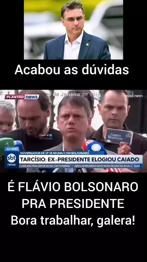 Após visita a Bolsonaro, Tarcísio confirma candidatura à reeleição: 'Meu interesse é ficar em São Paulo' Governador também reiterou apoio ao nome de Flávio Bolsonaro (PL) para a Presidência. Candidatura do senador desagradou setores da direita, que viam o nome de Tarcísio como mais competitivo contra o presidente Lula. @Abilio Brunini(O150001194326795) @Carlos Bolsonaro(O150001291776451) @Flávio Bolsonaro(O150001120824955) @Jairbolsonaro(O150001291768715) @Nikolas Ferreira(O150000268040696)