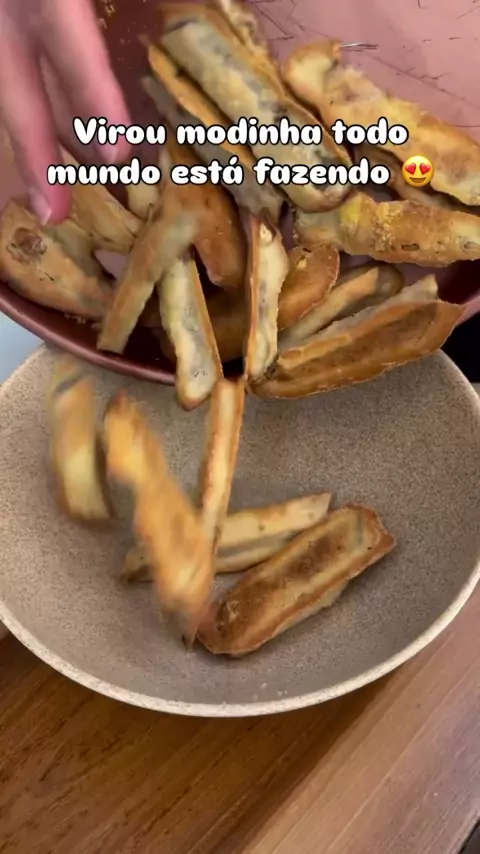 1 berinjela Empanada em: 1 xícara de farinha de trigo 2 c sopa lemmon Pepper Sal Massa 1 xícara de farinha de trigo 1 1/3 xícara de água gelada 1 c chá de sal Pimenta do reino Untar com azeite uma assadeira, espalhar um pouco de fubá , depois colocar mais um pouco de fubá sobre os cortes de berinjela. Assar em 180c por 25/35 minutos até que fiquem douradinhas. Gostou da receita? Deixe um ❤️ para eu saber Créditos: @familiapessoatardivo #berinjela #receitafacil
