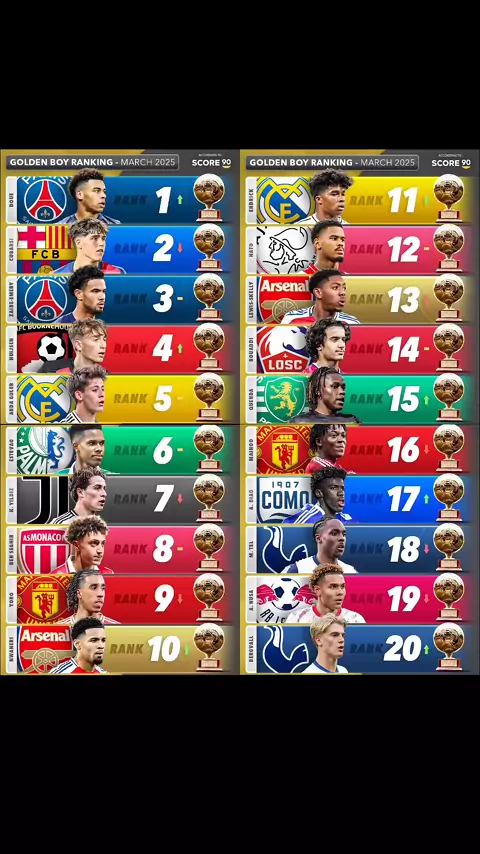 Golden Boy ranking Março 2025 🤯 #EsporteViral #MelhorarComFamilia #CopaDoMundo #Libertadores #paulistão