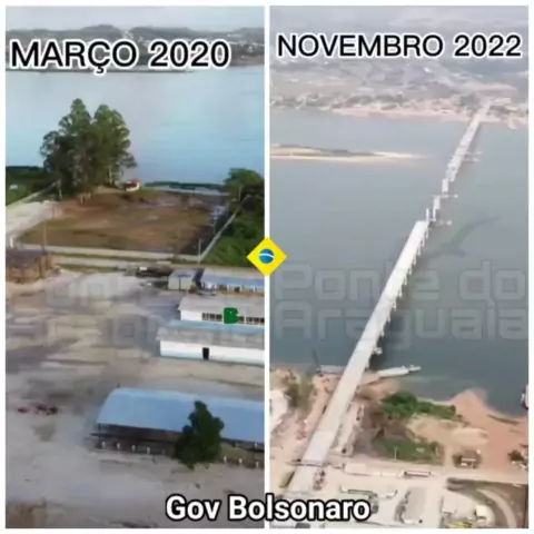 A diferença e o avanço da ponte sobre o rio Araguaia. O empreendimento irá unir as cidades de Xambioá/TO e São Geraldo do Araguaia/PA e vai eliminar a travessia por balsas. É mais desenvolvimento e menos gastos ao bolso do brasileiro! #norte #Notícia #BOLSONARO #obras #economia
