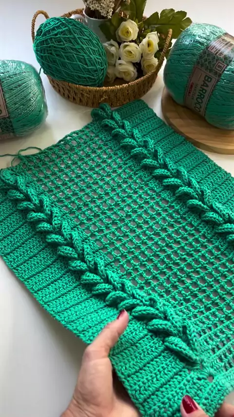 “Trança que transforma fios em elegância ✨ Cada ponto feito com técnica, amor e anos de experiência no crochê. Quem ama mesa posta com identidade, entende esse detalhe 💚#croche #crochetando #crochemoderno