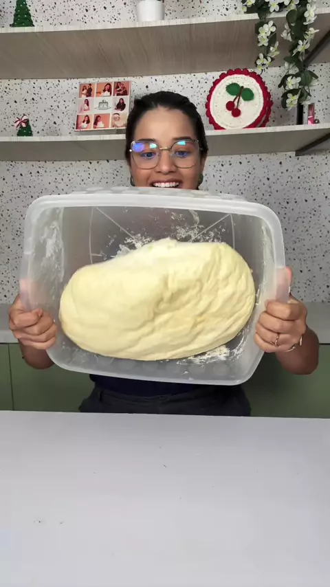 Eu dupliquei a receita para o pão de vídeo! 1 xícara e meia de leite morno ( xícara de 200 ml) 1 OVO Meia xícara de óleo 1 saquinho de termento biologico 3 colheres de açúcar 1 colher (chá) de sal Mais ou menos 800 gramas de farinha de trigo