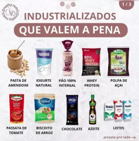 Nem todo alimento industrializado é ruim, sabia? Existem boas opções que podem ser incluídas na nossa rotina diária. Quer escolher um bom alimento industrializado? Crie o hábito de ler a lista de ingredientes! Escolha aquele que tem uma lista menor e saiba que o primeiro ingrediente da lista é aquele que está em maior quantidade! Lembre-se que a maior parte da nossa alimentação deve ser com alimentos in natura, mas podemos sim incluir alguns "industrializados do bem" para deixar a nossa alim