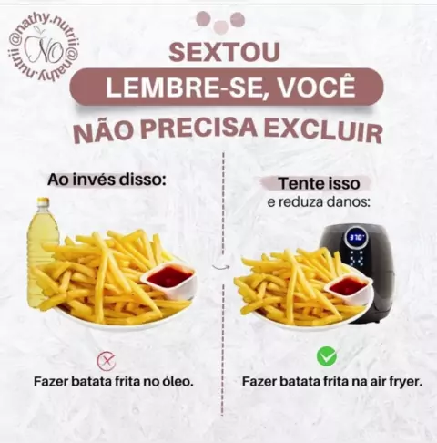 Arrasta para o lado. Entenda, você não precisa excluir alimentos que gosta! Mas é necessário SIM mudar os hábitos e aprender a fazer melhores escolhas. Vamos descomplicar um pouco? Excluir alimentos que você gosta não é sustentável a longo prazo! Por isso, a melhor forma é incluí-los de forma saudável na rotina. Assim você conseque ter um processo de emagrecimento com resultados que serão mantidos por toda sua vida. E você, me conta.. Já achou que era necessário excluir certos alimentos pa