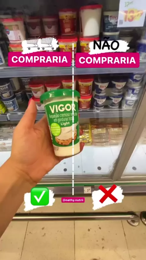 Alimentos aleatórios que eu compraria e não compraria. Sempre que você for colocar algum Industrializado no carrinho, lembre-se de ler a lista de ingredientes e escolha a opção que estiver a menor quantidade de ingredientes na composição. ( significa que o produto contém menos aditivos ) Espero que tenha gostado 🥰 Agora me diz ai , qual desses alimentos você tem o costume de comprar ? Ps: Se estiver precisando de um acompanhamento individualizado é só clicar no link da minha bio para adqu