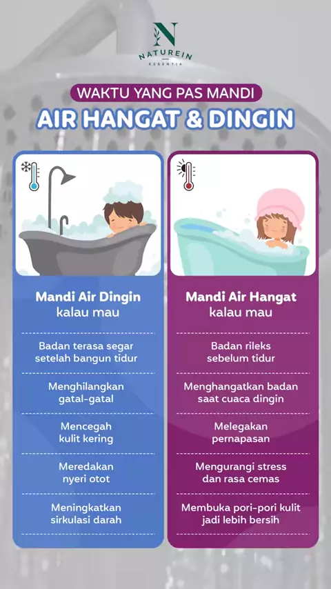 Ternyata mandi pakai air hangat atau dingin itu sebaiknya disesuaikan dengan kondisi tubuh lho! Tapi kalau NatuFams sendiri, termasuk tim yang mana nih? 🤔 #mandi #airhangat #airdingin #funfact #healthyfacts