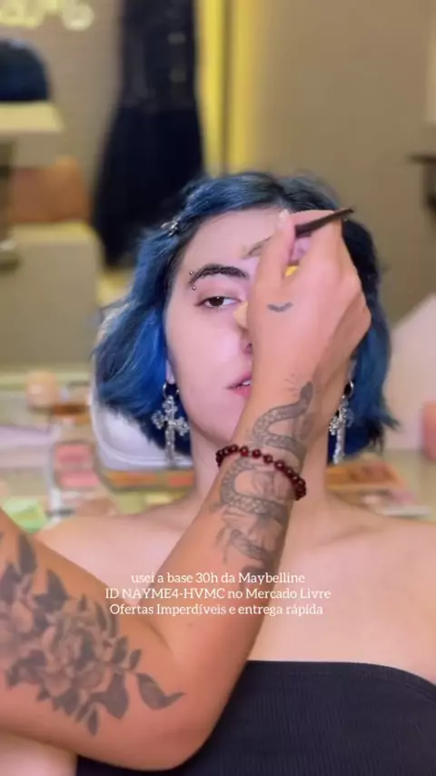 Cílios azul, sardas fakes e muito brilho ✨ Nada básica essa make de hoje 🤭 . . . ID Vinyl Ink NAYME4-ZHU3 @mercadolivremoda #OMelhorDaBeleza #MercadoLivreModa