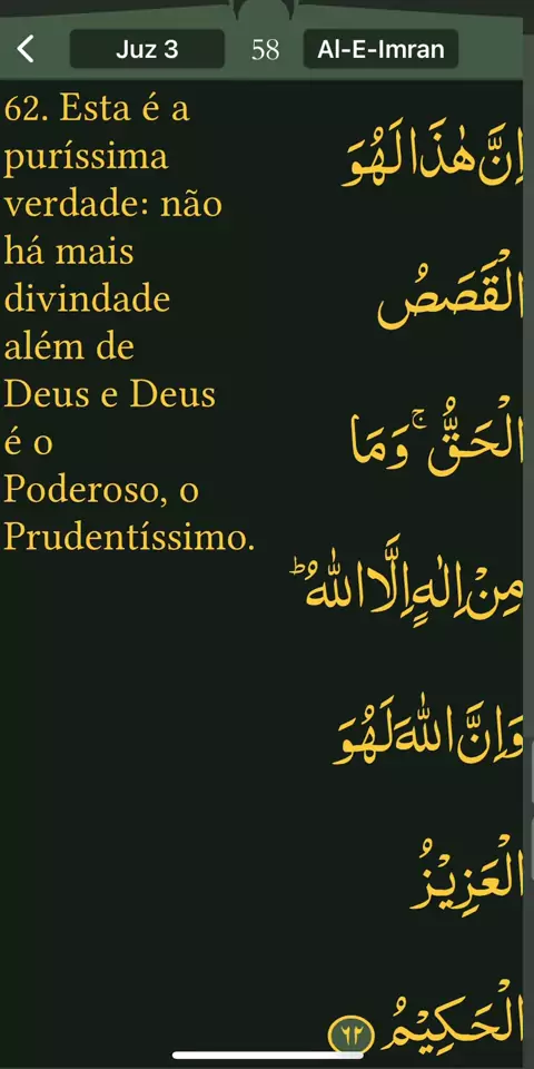 Read Qur’an everyday with naziaqaiser - Surah Al-E-Imran, verse , 62, - Portuguese language