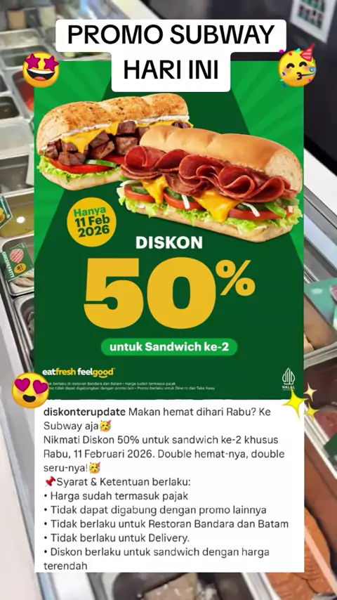 Promo Subway diskon 50% 🥳 #promomakanharian #promosubway #subway #diskonsubway #vouchersubway