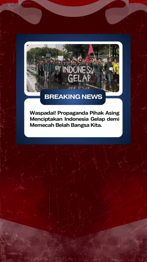 Waspada terhadap aksi "Indonesia Gelap", yang merupakan provokasi untuk memecah belah bangsa. Propaganda ini mengancam stabilitas politik dan ekonomi negara. Mari bersama menjaga Indonesia tetap terang dan aman. #IndonesiaTerang