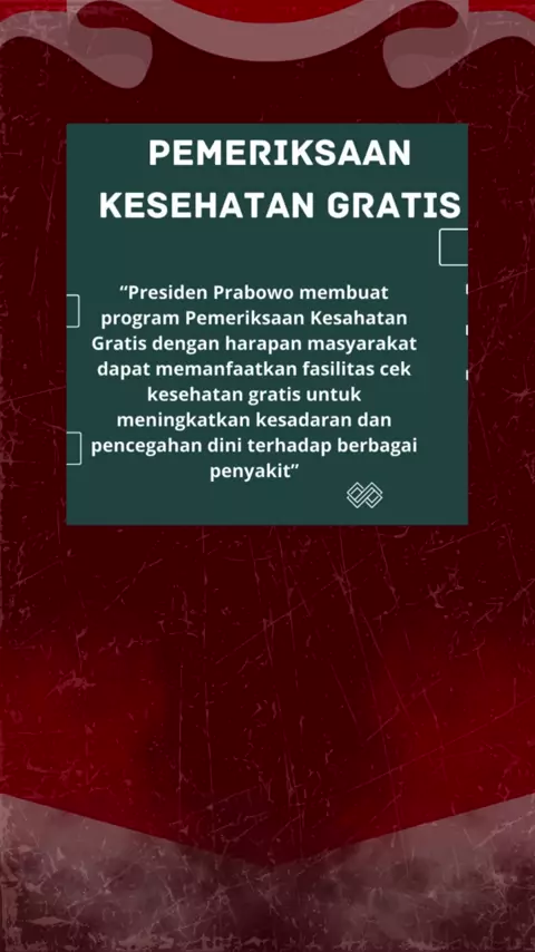 Program Pemeriksaan Kesehatan Gratis yang diprakarsai oleh Presiden Prabowo bertujuan meningkatkan kesadaran masyarakat dalam pencegahan dini berbagai penyakit, memastikan semua mendapatkan akses kesehatan. #CekKesehatanGratis