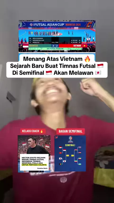 Timnas Futsal Indonesia mencatat sejarah. Untuk pertama kalinya berhasil lolos ke semi-final AFC Asian Cup ๐Ÿ”ฅ#timnasfutsalindonesia#timnasfutsal#afcfutsalasiancup2026#afcfutsalasiancupindonesia2026