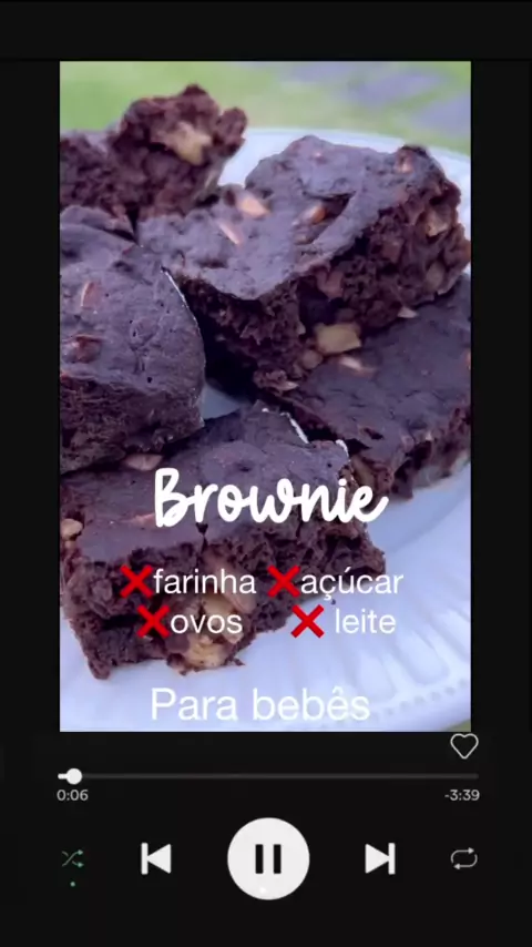 Brownie para bebê Receita 4 bananas 2 colheres de sopa de cacau 100% Maçã e nozes bem picadinho (opcional) 1 colher de chá de fermento para bolo Asse por 25min a 180° #introducaoalimentar #papai #mamae #brownie #dicas
