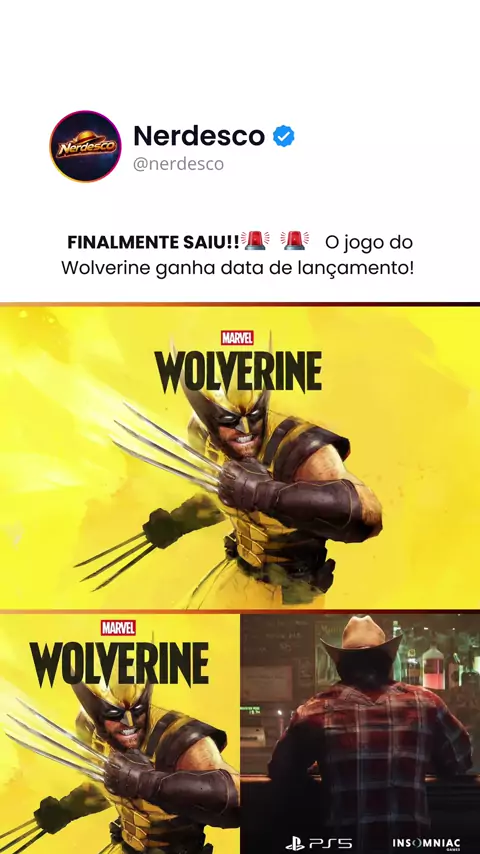 TA CONFIRMADO ๐Ÿ”ฅ Dia 15 de Setembro de 2026 รฉ dia de Wolverine! Chegando primeiro ao PlayStation 5 ๐ŸŽฎ Desenvolvido pela Insomniac Games, em parceria com a Marvel Games e a Sony Interactive Entertainment, o jogo apresenta uma nova versรฃo do personagem inspirada nos quadrinhos da Marvel, com uma abordagem mais intensa e envolvente. Vocรช tambรฉm estava no aguardo? Comenta โ€œEUโ€ ๐Ÿ‘‡ E marca aqui quem vai jogar com vocรช! ๐ŸŽฎ๐Ÿ”ฅ #jogo #Wolverine๐Ÿ’ช #playstaton4 #noticias #maisviews