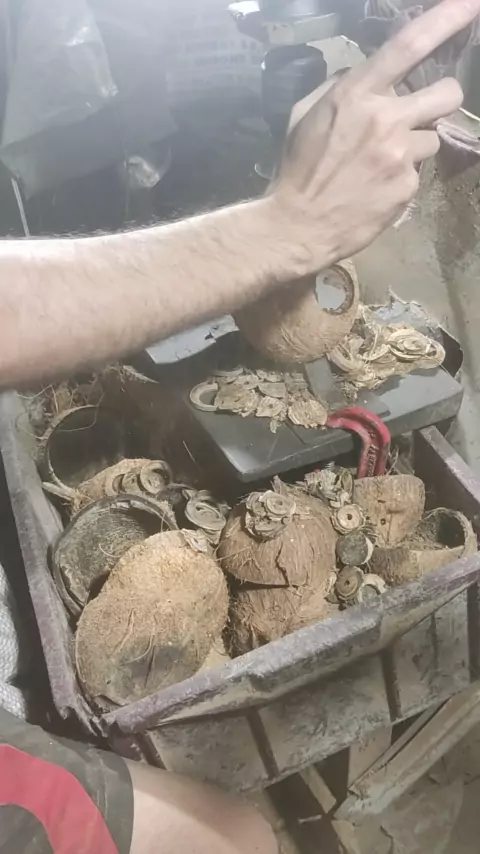 estampando argolas de coco