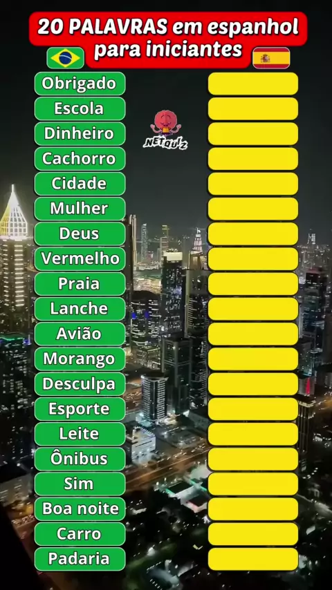 20 palavras em espanhol para iniciantes! #quiz #espanhol #fluente #ingles #espanha