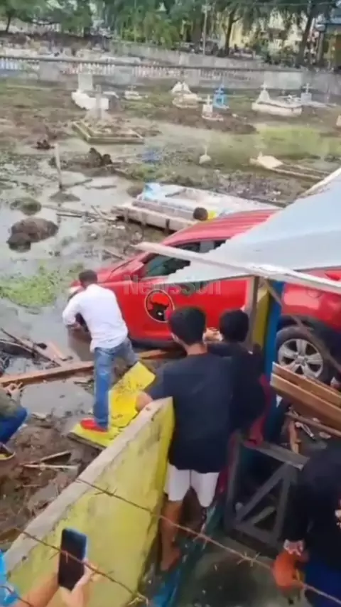Mobil PDIP seruduk tembok kuburan. Upload 24/8/23.