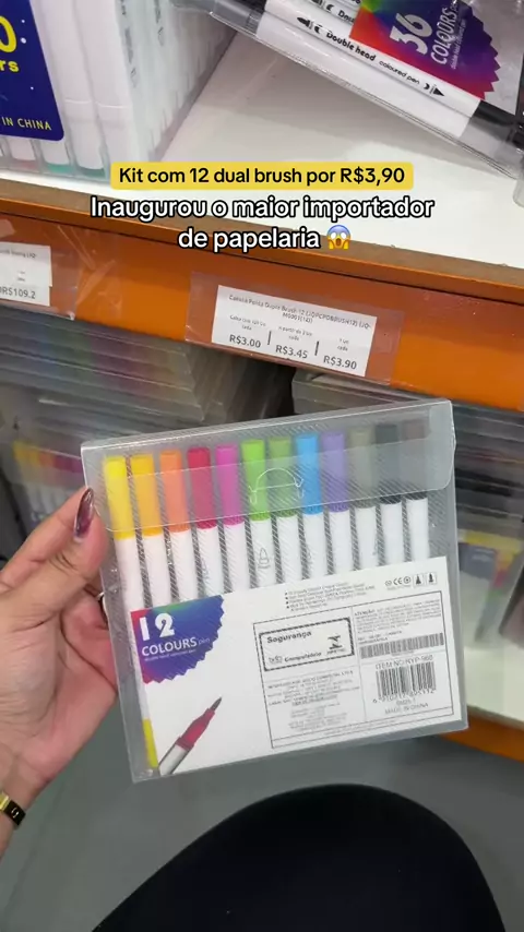 Inaugurou o maior importador de papelaria 😱 kit 12 brush por R$3,90#brushpen#papelaria#lettering#canetas#nickindicasp