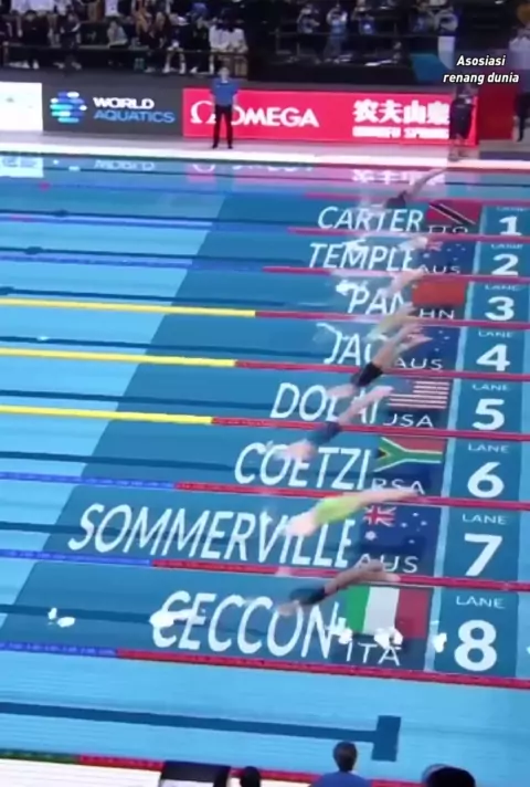 Di stasiun Shanghai dari Piala Dunia 2024 renang, Pan Zhanle memenangkan medali emas dalam 46,35 detik dan Italia memenangkan medali emas dalam 46,32 detik. # 2024 renang piala dunia stasiun Shanghai