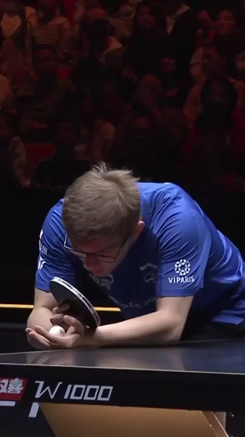 Popular memimpin, dan Wang Chuqin mencetak poin pertama. # Forehand Wang Chuqin membuka Popular.