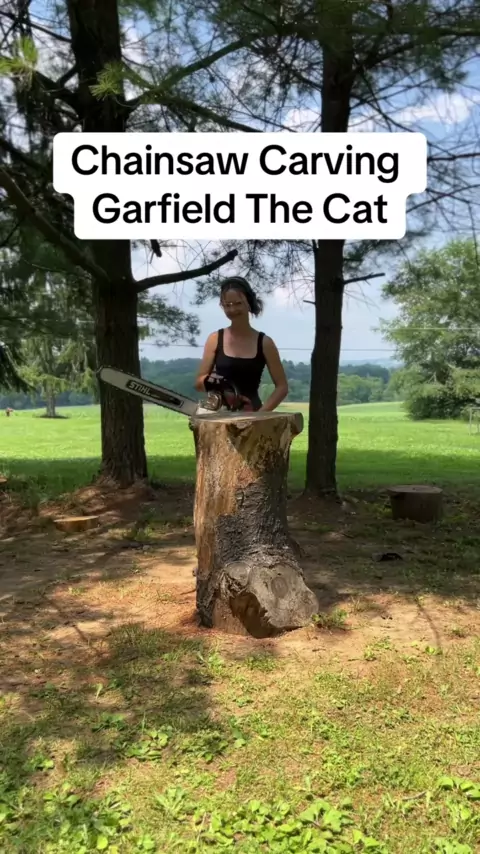 "Bem, se não é a comida mais perfeita da natureza... lasanha!!".... # chainsawjenna # chainsaw # garfieldthecat # garfield # wood # woodworking # bluecollar # chainsawcarver # cat