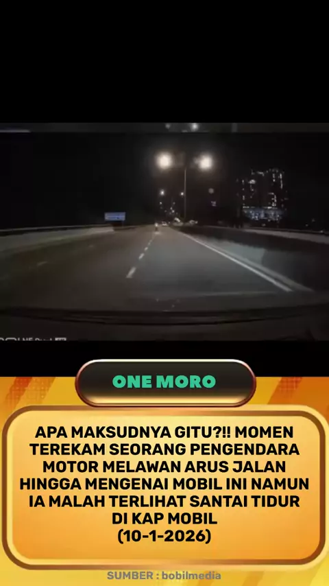 Apa maksudnya gitu?!! Momen terekam se#orang pengendara motor melawan arus #jalan hingga mengenai #mobil ini namun ia malah terlihat santai tidur di kap mobil