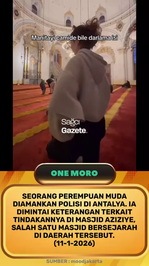 seorang #wanita muda diamankan #polisi di Antalya. Ia dimintai keterangan terkait tindakannya di #Masjid Aziziye, salah satu masjid bersejarah di daerah tersebut.