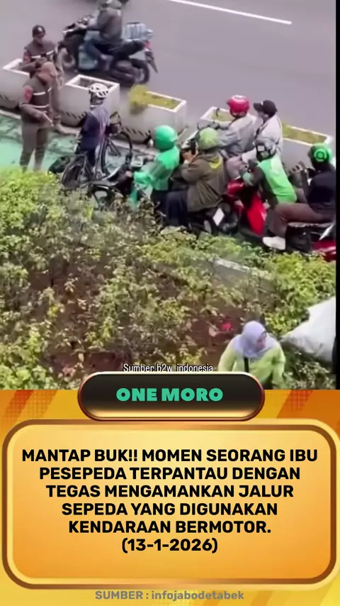 Mantap buk!! Momen Seorang #ibu pesepeda terpantau dengan tegas mengamankan jalur #sepeda yang digunakan kendaraan ber#motor.