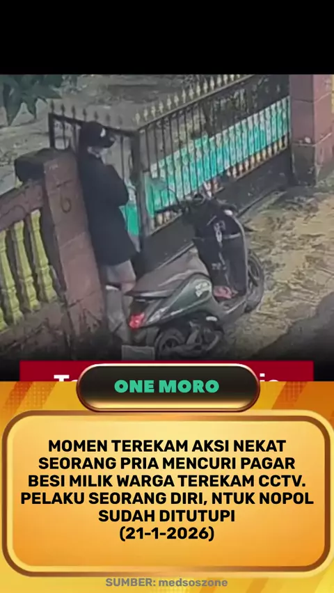 Aksi nekat se#orang #pria mencuri pagar besi milik #warga terekam CCTV. Pelaku seorang diri, ntuk nopol sudah ditutupi