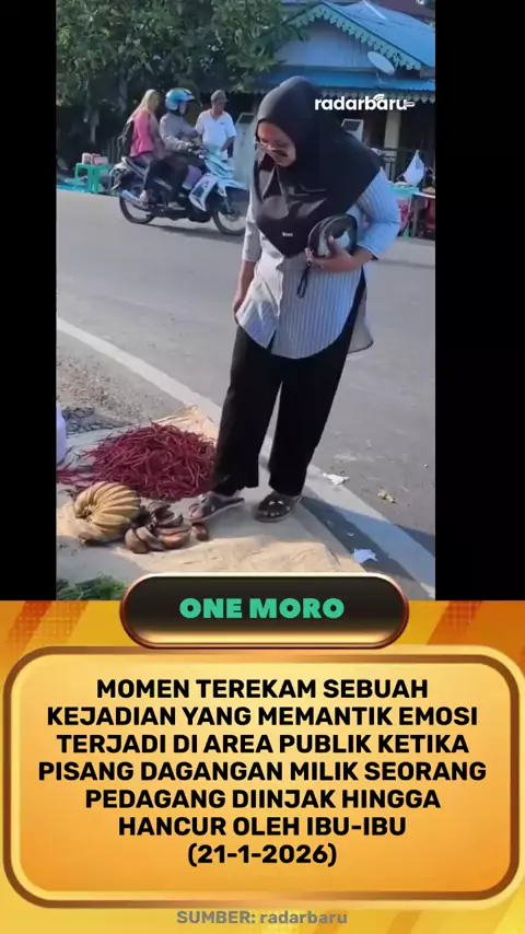 Momen terekam Sebuah kejadian yang memantik emosi terjadi di area publik ketika #pisang dagangan milik se#orang pedagang diinjak hingga hancur oleh #ibu-ibu