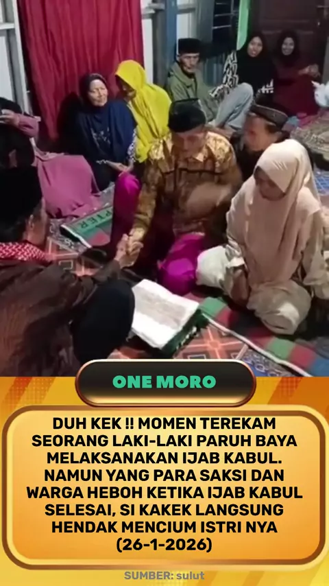 Momen terekam se#orang laki-laki paruh baya melaksanakan ijab kabul. Namun yang para saksi dan #warga heboh ketika ijab kabul selesai, si kakek langsung hendak mencium #istri nya